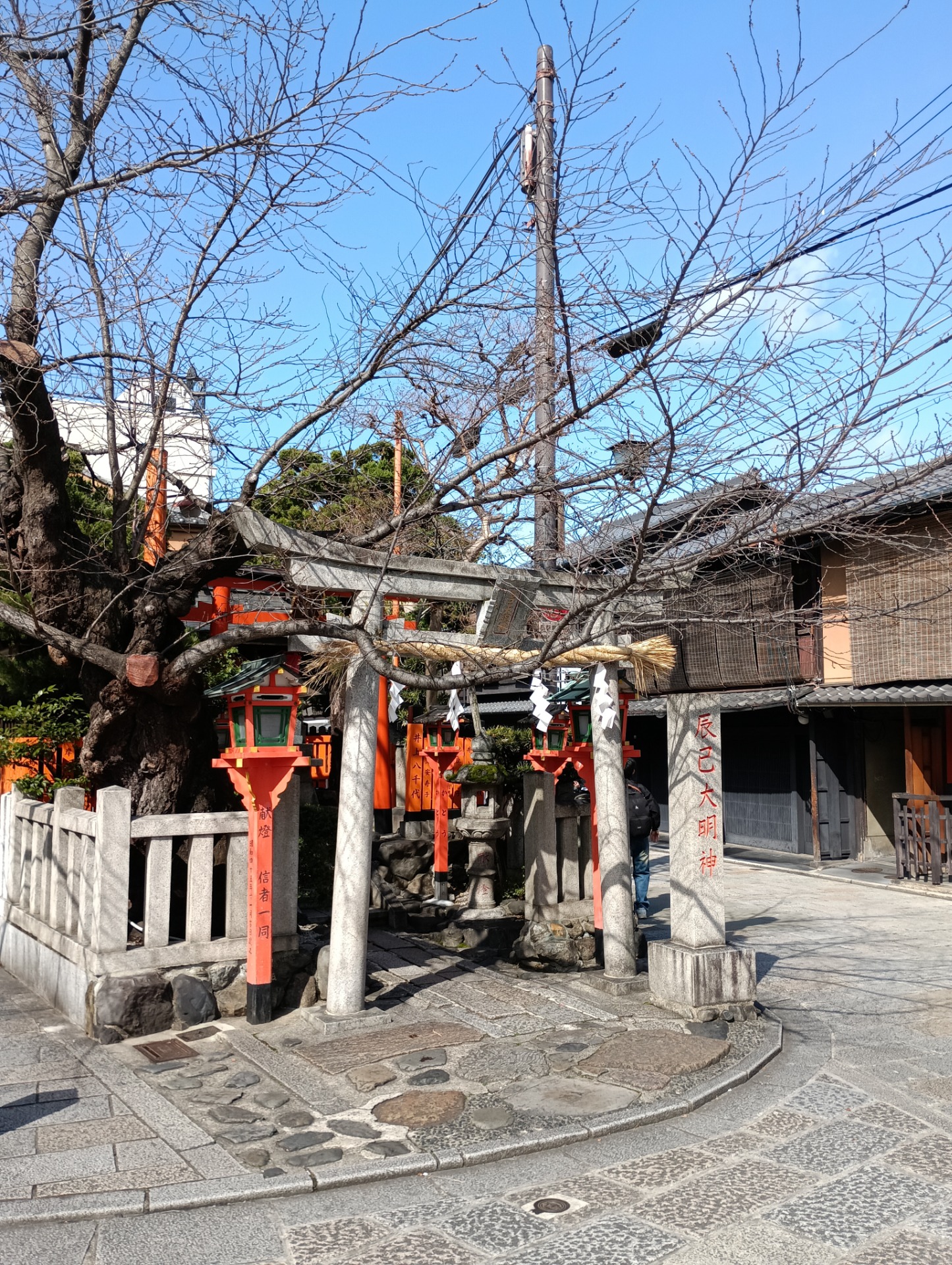 祇園の辰巳大明神様は、無病息災、商売繁盛の神として信仰されています。