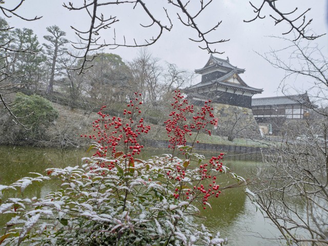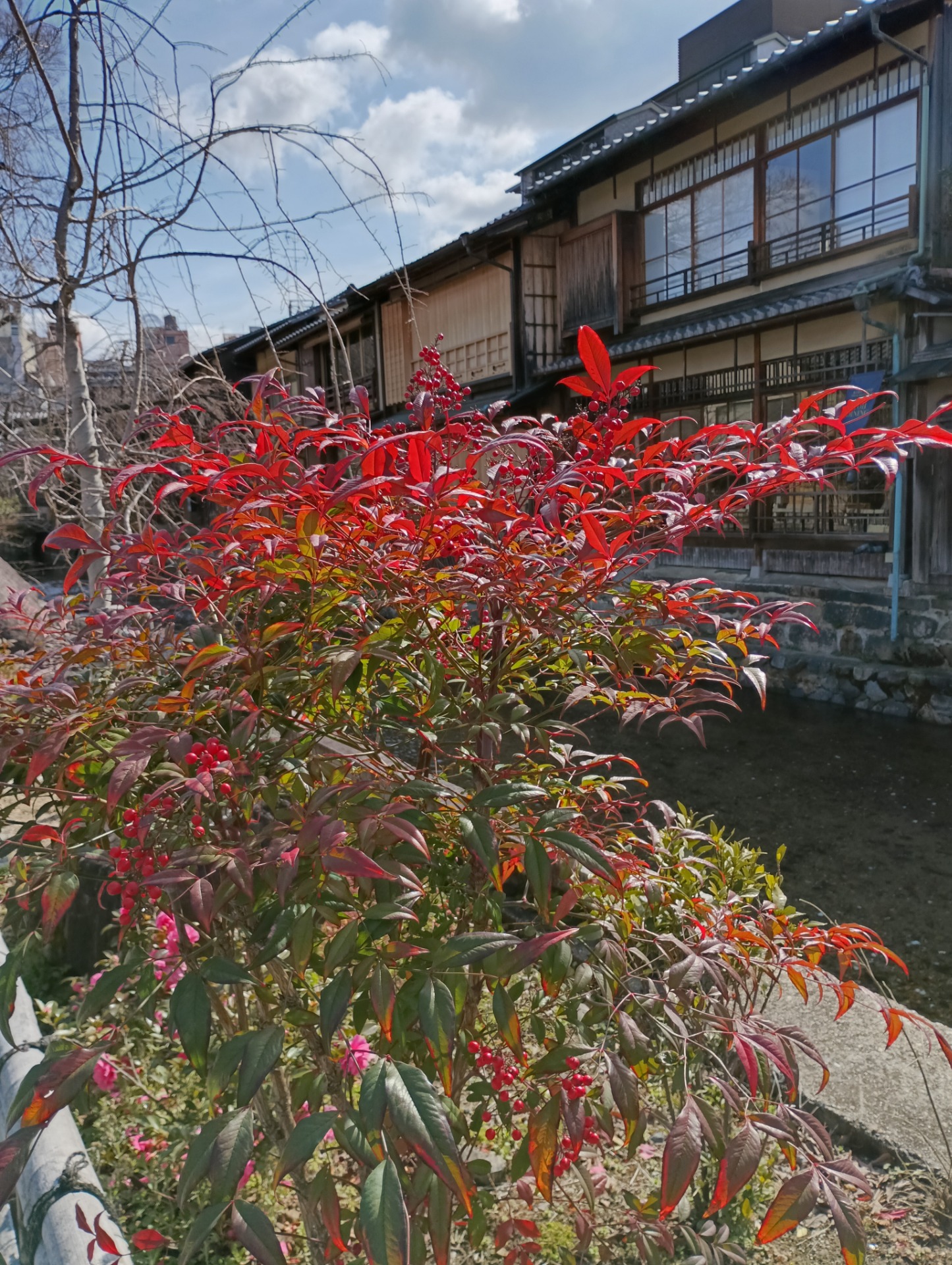 この時期、京の町を歩くと、椿の花や赤い実をつけた南天をよく見かけます。