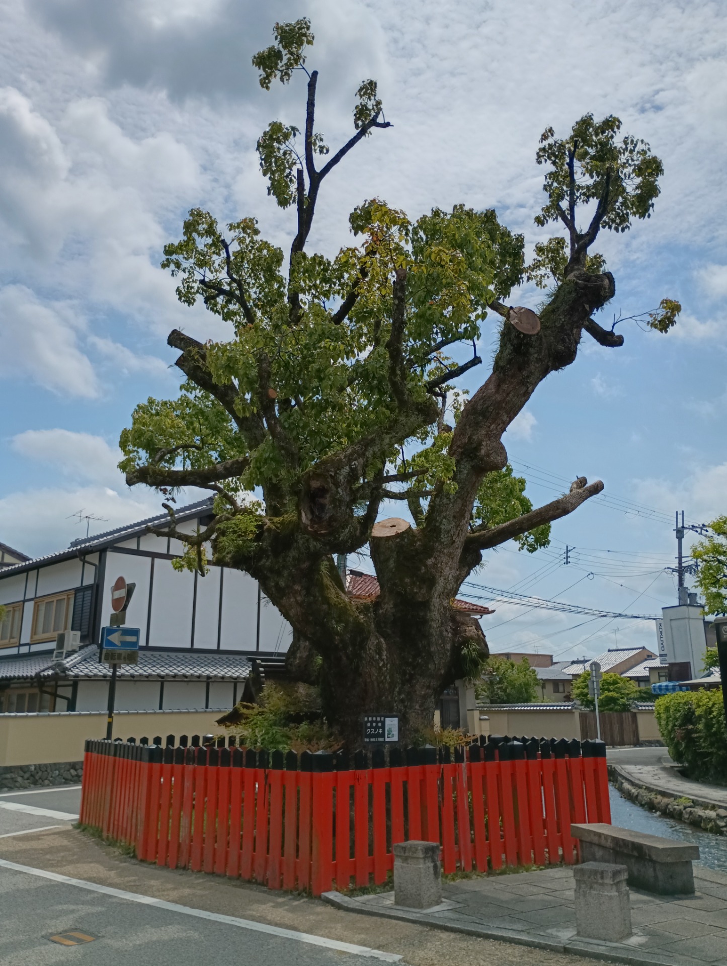 上賀茂神社の社家町を東へ進んだところに、大きなクスノキがあります。