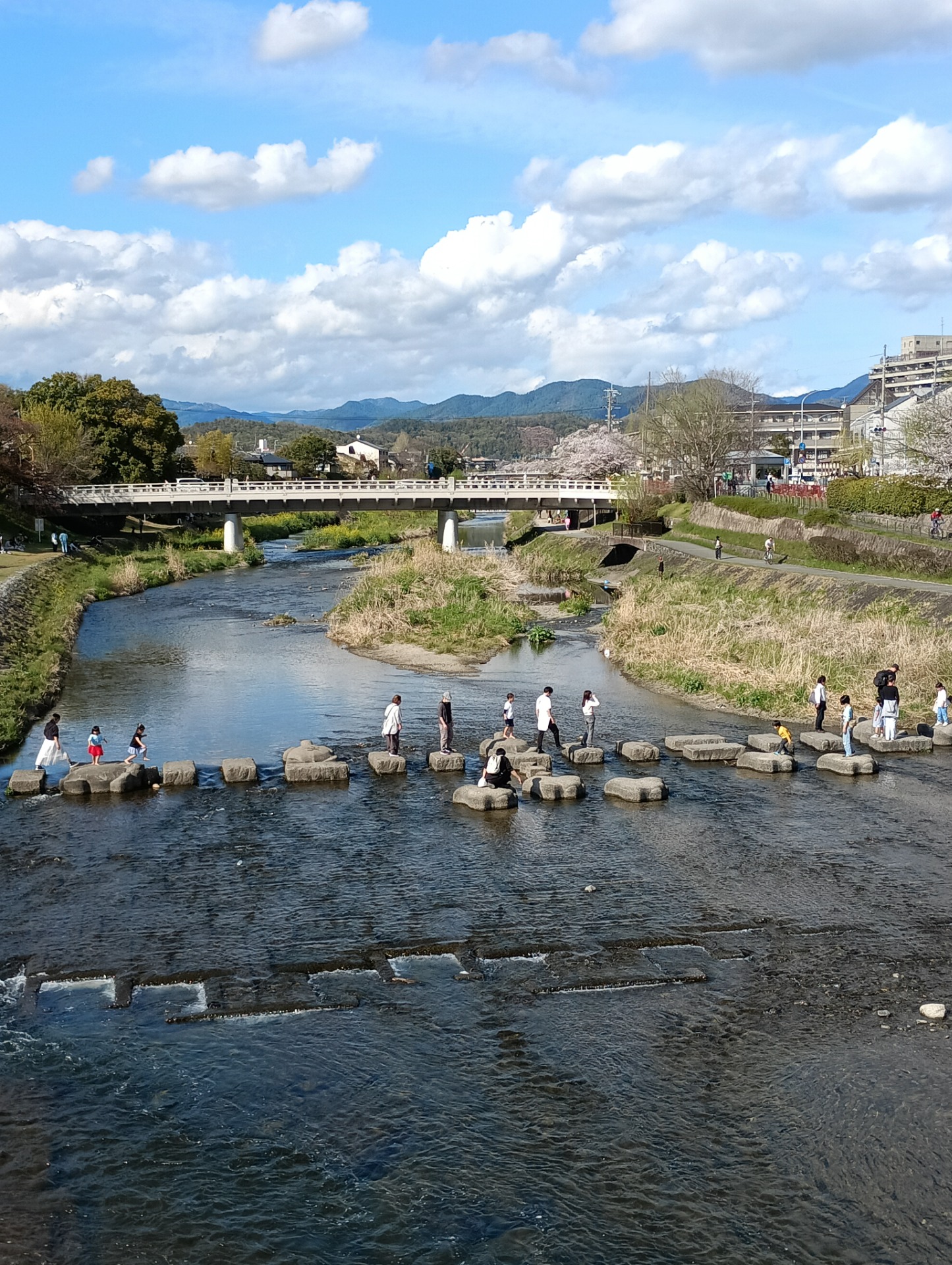 鴨川と高野川に数カ所、飛び石があります。石は亀や千鳥、舟などの形をしています。