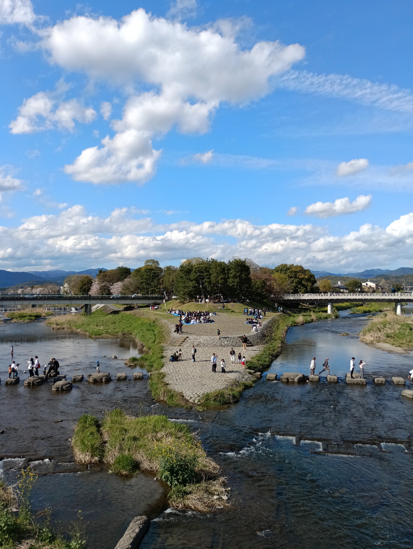 1枚目の写真は、賀茂大橋からみた賀茂川。