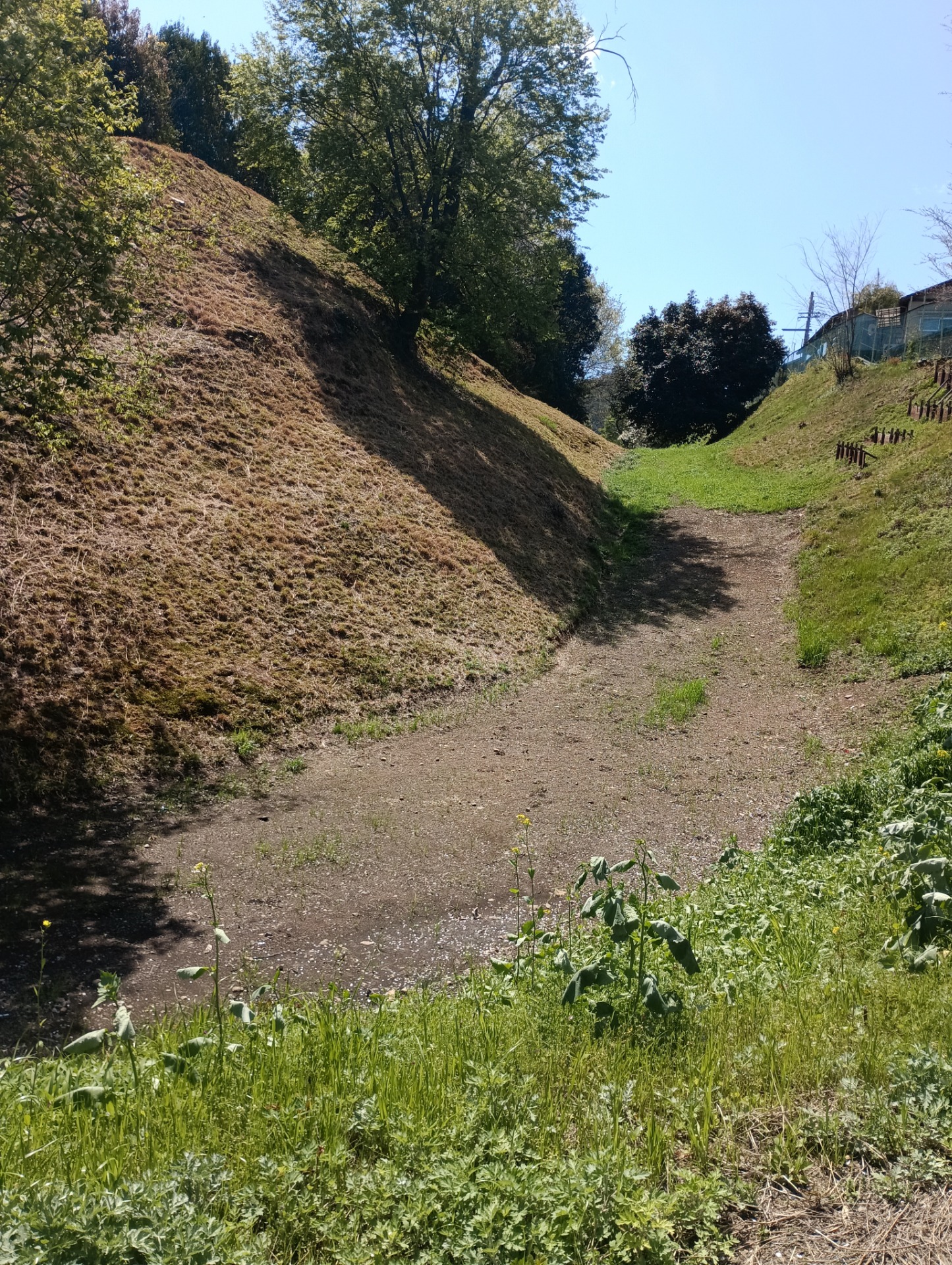 土を約3~5メートル盛り、その上には竹が植えられていたそうです。さらにその土塁の外側には堀がつくられていました。