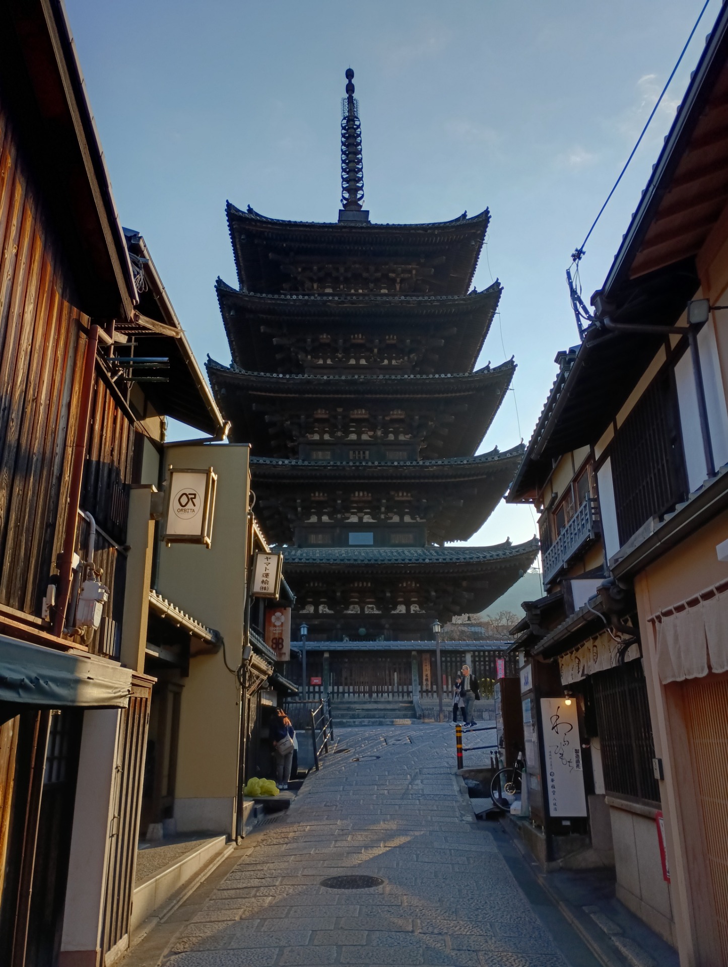 現在の塔は4代目、約600年ほど前に再建されました。高さは46メートル。八坂法観寺は臨済宗建仁寺派の お寺です。